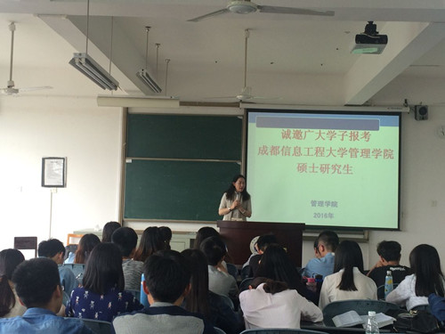 黄萍就我校的硕士研究生信息从三大方面给同学们进行了深入的讲解:一是介绍我校办学历程和硕士点建立和发展情况。充分说明了我校的办学理念紧贴需求,在服务行业和地方发展中正不断进步。二是详细介绍betway88西汉姆联硕士点举办情况。目前,betway88西汉姆联举办了管理科学与工程1个学科硕士点以及灾害管理工程、项目管理、信息资源管理、旅游管理工程、组织创新与知识管理5个二级学科硕士点和1个农学专业硕士领域农村科技组织与服务,并谈到了这些硕士点未来发展趋势,同时对我院杰出导师和学科平台进行了介绍,充分展示了我院强大的师资力量和办学实力。三是介绍了研究生奖助政策。欢迎同学们积极报考betway88西汉姆联研究生,极大鼓舞了同学们的热情。