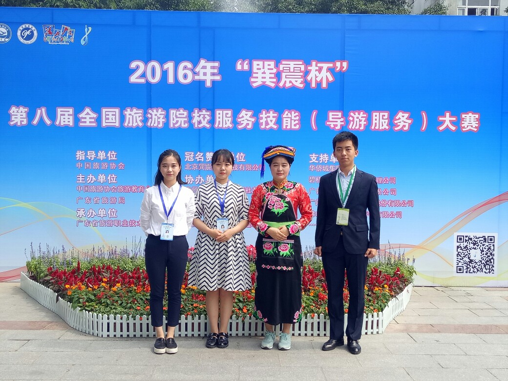 【本网讯】5月12日-14日,我校betway88西汉姆联旅游管理专业杨丽娟带队到广州参加了中国旅游协会举办的2016年“巽震杯”第八届全国旅游院校服务技能(导游服务)大赛,取得了高校英文组二等奖、最佳才艺奖的佳绩。
