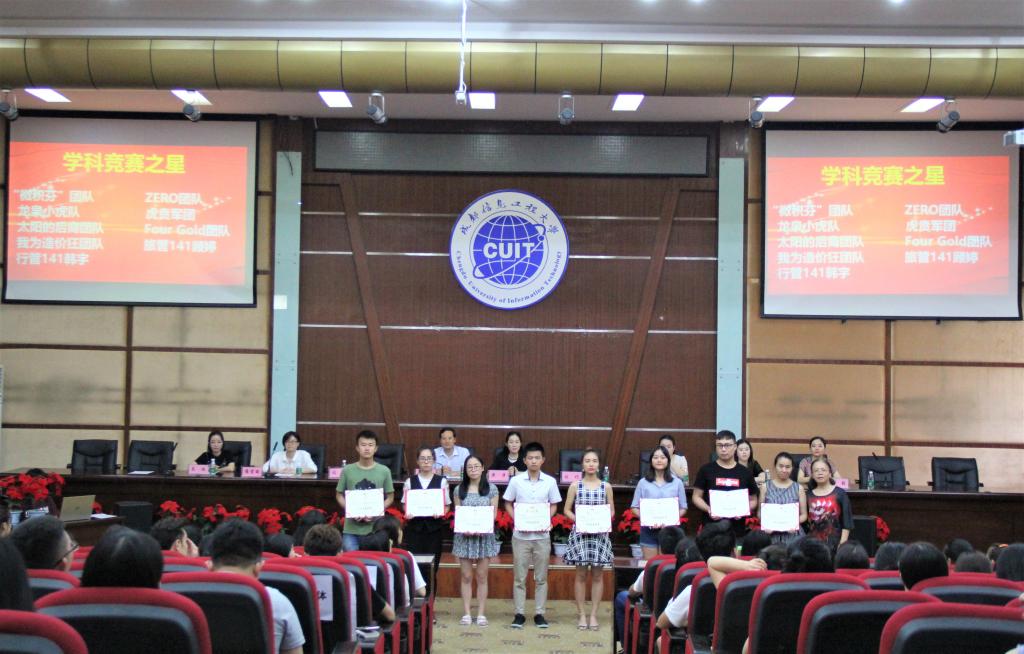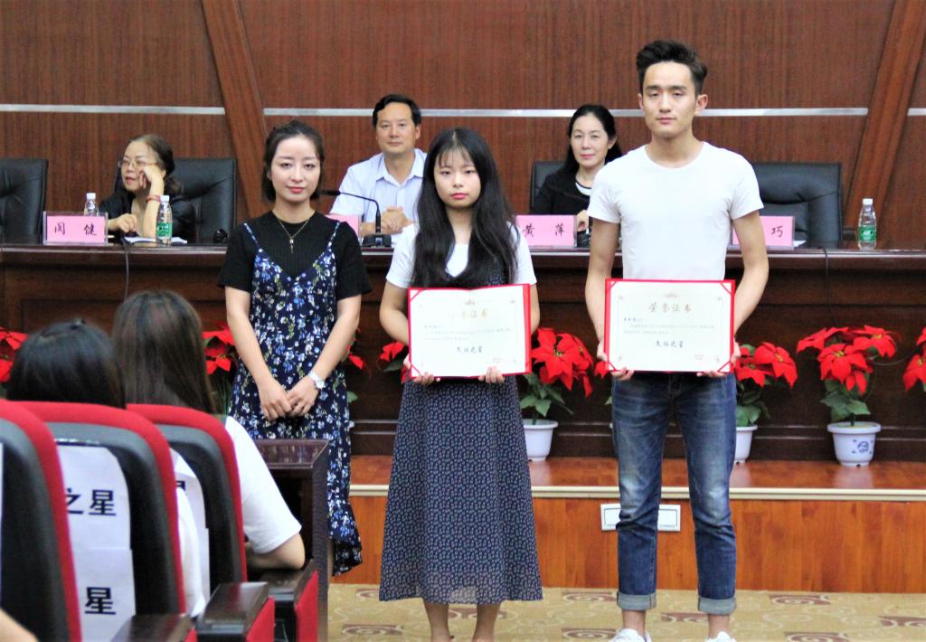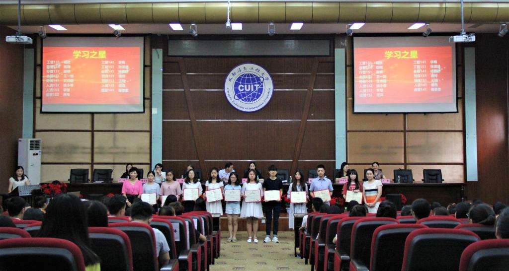 大会开始,主持人介绍到场来宾。在全体师生起立奏唱国歌后,学院党总支书记王子华宣读表彰决定,开始颁奖,在座颁奖嘉宾依次为学习之星、志愿者之星、文体之星、十佳班干、励志创业之星、学科竞赛之星以及十佳青年、先进班集体等奖项获得者或团体颁发奖状。随后,管理之星获奖学生代表冉钧恺发言,他表明作为青年的我们应该励志向上、不断充实提高自己,鼓励学弟学妹们认真学习、抓住未来道路上的机遇发展自我。