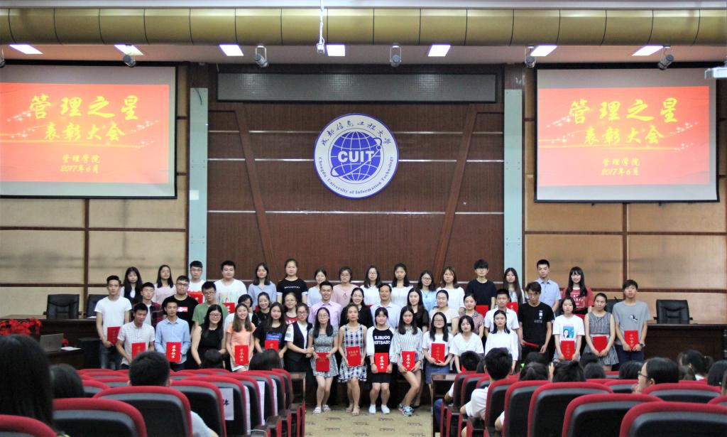 2017年6月9日下午,2015-2016学年“管理之星”表彰大会在龙泉校区三教学术报告厅成功召开。学院院长黄萍、党总支书记王子华、学院党政办主任刘巧及全体辅导员出席了此次大会。大会由分团委书记王菁主持,我院全体大一学生参加了本次表彰大会。