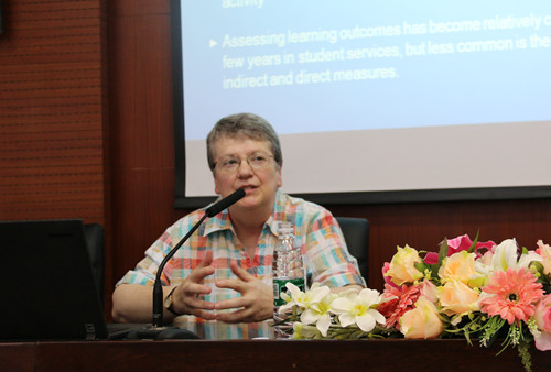 6月24日上午,美国新罕布什尔大学教授系列讲座之“Innovation in Student Leadership Programs and Measuring Their Educational Outcomes”在龙泉校区1213教室举行,讲座由美国新罕布什尔大学学生事务处处长Mary Anne Lustgraaf主讲,我校betway88西汉姆联80名师生聆听了此次讲座。讲座由betway88西汉姆联副院长李贵卿主持。
