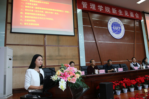 旅游管理专业副教授,我校第一届“最受学生欢迎教师”宋雪茜博士,作为教师代表,向全体新生致欢迎辞,人力资源管理专业2014级的冉钧恺、旅游管理专业2016级的李阳分别代表老生、新生做了发言。