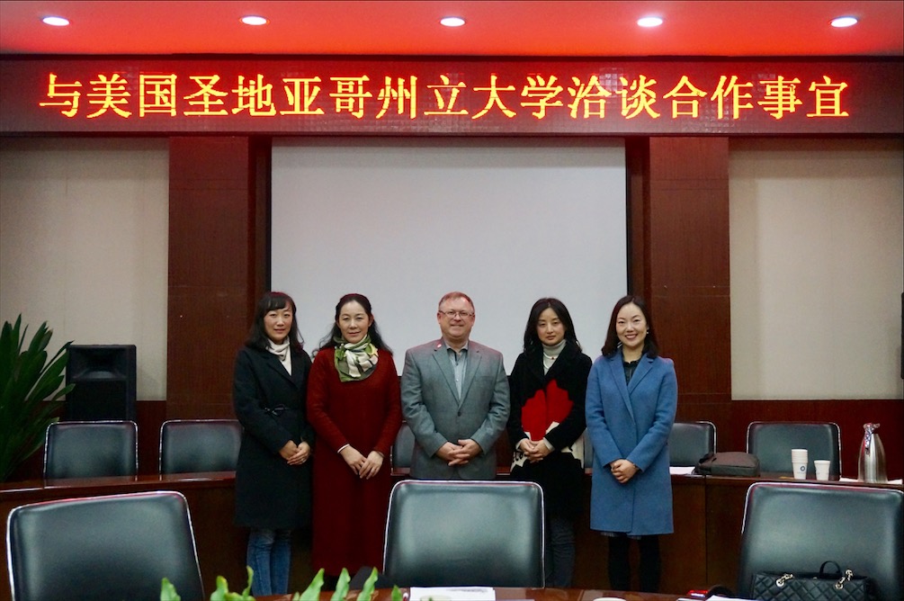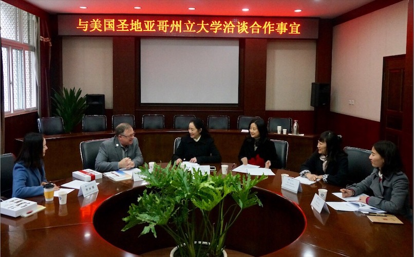 3月15日下午,美国圣地亚哥州立大学(San Diego State University)国际部主任Brian Blake先生、国际项目负责人樊丽娜女士一行来校访问并在行政楼第六会议室参加交流会议,商讨两校合作事宜。会议由betway88西汉姆联院长黄萍主持,国际交流与合作处科长盖秋艳、betway88西汉姆联副教授陈敏参加会议。