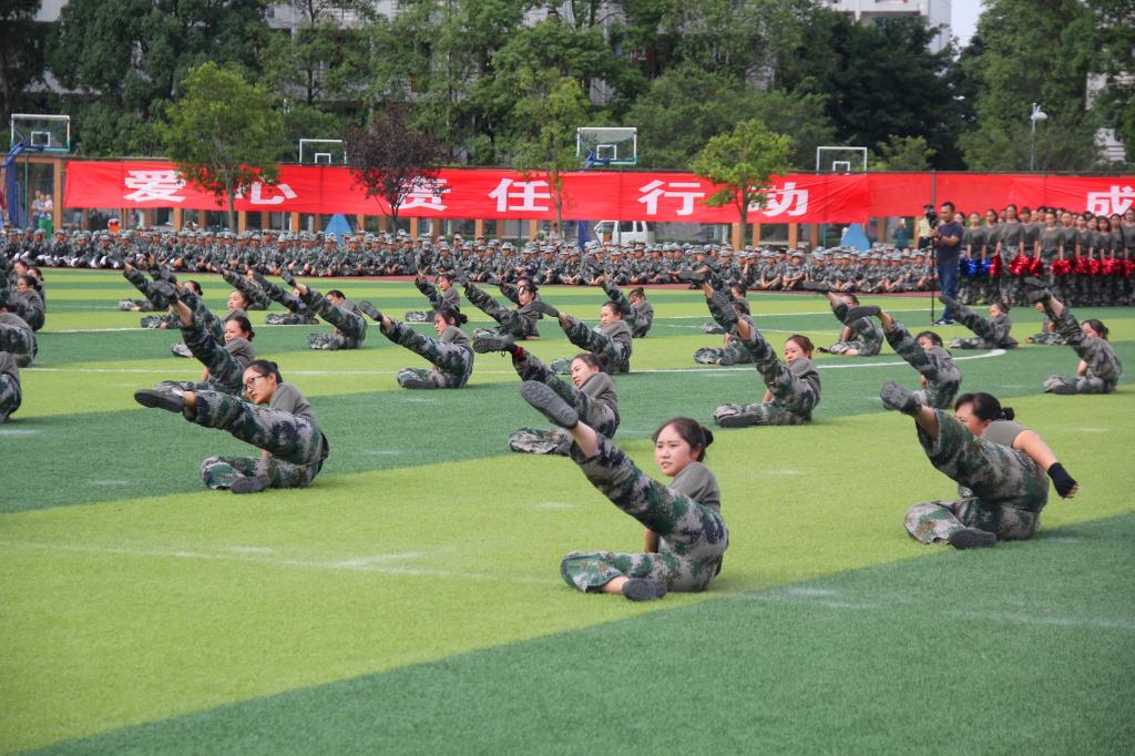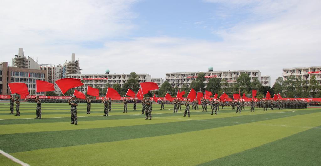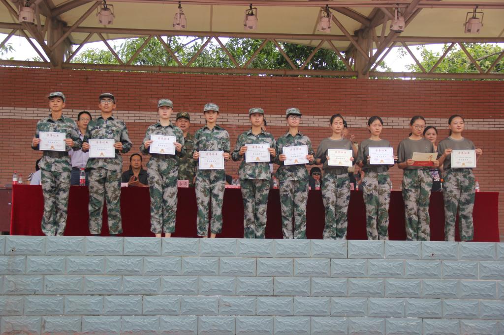 下午14点,总指挥徐战集合队伍完毕,同学们以方队为单位,整齐划一、精神饱满肃立在足球场上。大会在迎军旗、奏国歌中正式开始。首先,军训总指挥徐战检阅军训队伍,确认军训队伍准备完毕。紧接着,在教官的指挥下,分列式队列开始表演。男子抱枪方队和女子徒步方队为首的七个队伍喊着响亮的口号、迈着矫健的步伐经过主席台,他们气势昂扬、举手投足间虎虎生风,向领导嘉宾展示了训练后的骄人成绩。随后,女子擒敌方队、女子防身术、红旗棍术方队心理健康操方队和教官表演依次上场,他们满怀热情、精神抖擞的精彩表演赢得在场领导和老师们的一致好评,也展示了我校新生良好的形象和精神风貌。会上,领导嘉宾给优秀集体和优秀个人颁发了奖状。大会最后,于世祥校长发表讲话,预祝新生在未来的学习生活中能发扬军训中“不怕苦、不怕累”的军人精神,将未来的大学生活点缀得更缤纷多彩。