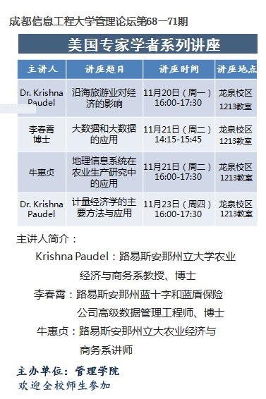 【学术预告】管理论坛——美国专家学者系列讲座