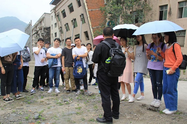 4月21日,betway88西汉姆联工程管理专业2017级学生到北川开展地质灾害防治的工程实践活动,此次工程实践由工程管理教研室副主任刘奇欣和李朝安、庞鹏博士负责,工程管理专业学生参观了北川魏家沟泥石流灾害现场,相关专业老师结合理论知识,深入浅出的对泥石流地质灾害的监测与预警进行了讲解,同时对护坡、挡墙等防护措施进行具体说明,大家来到湔江水边,现场看到了当地采用的石笼护坡,为防止山体滑坡采用钢筋砼骨架锚杆护坡,为改变泥石流的流向与流速修建的排泄沟、导流堤、急流槽等工程。此外,负责老师还结合土木工程知识,就房屋结构、工程力学等进行了讲解。