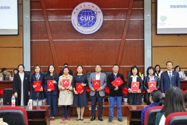 李璘来宣读了班导师名单,院长黄萍、党委书记王子华为班导师颁发了聘书。
