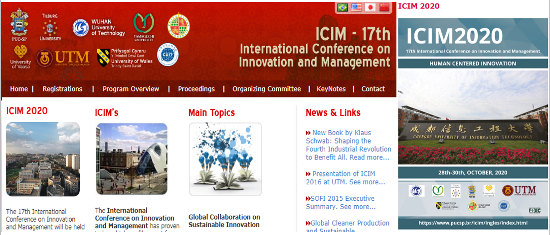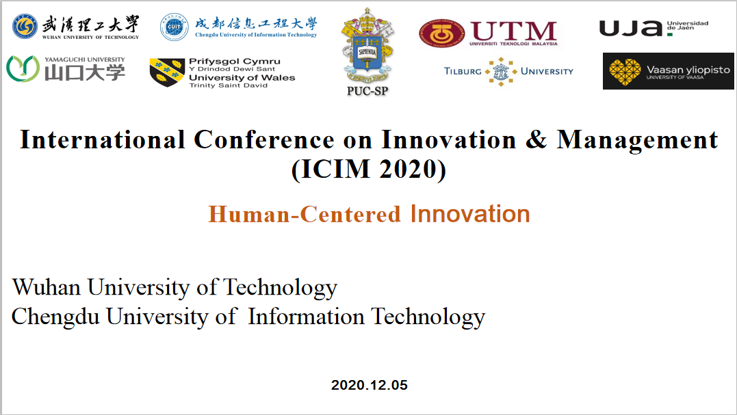 The 17th International Conference on Innovation & Management (ICIM2020) was successfully held online on 5 December 2020. The conference is held annually and is an international association conference accredited by ICCA (International Congress and Convention Association). This year's conference, themed "Human-Centered Innovation", was co-hosted by Chengdu University of Information Technology and Wuhan University of Technology, and co-organised by the Pontifical Catholic University of São Paulo, Universiti Teknologi Malaysia and other national universities.