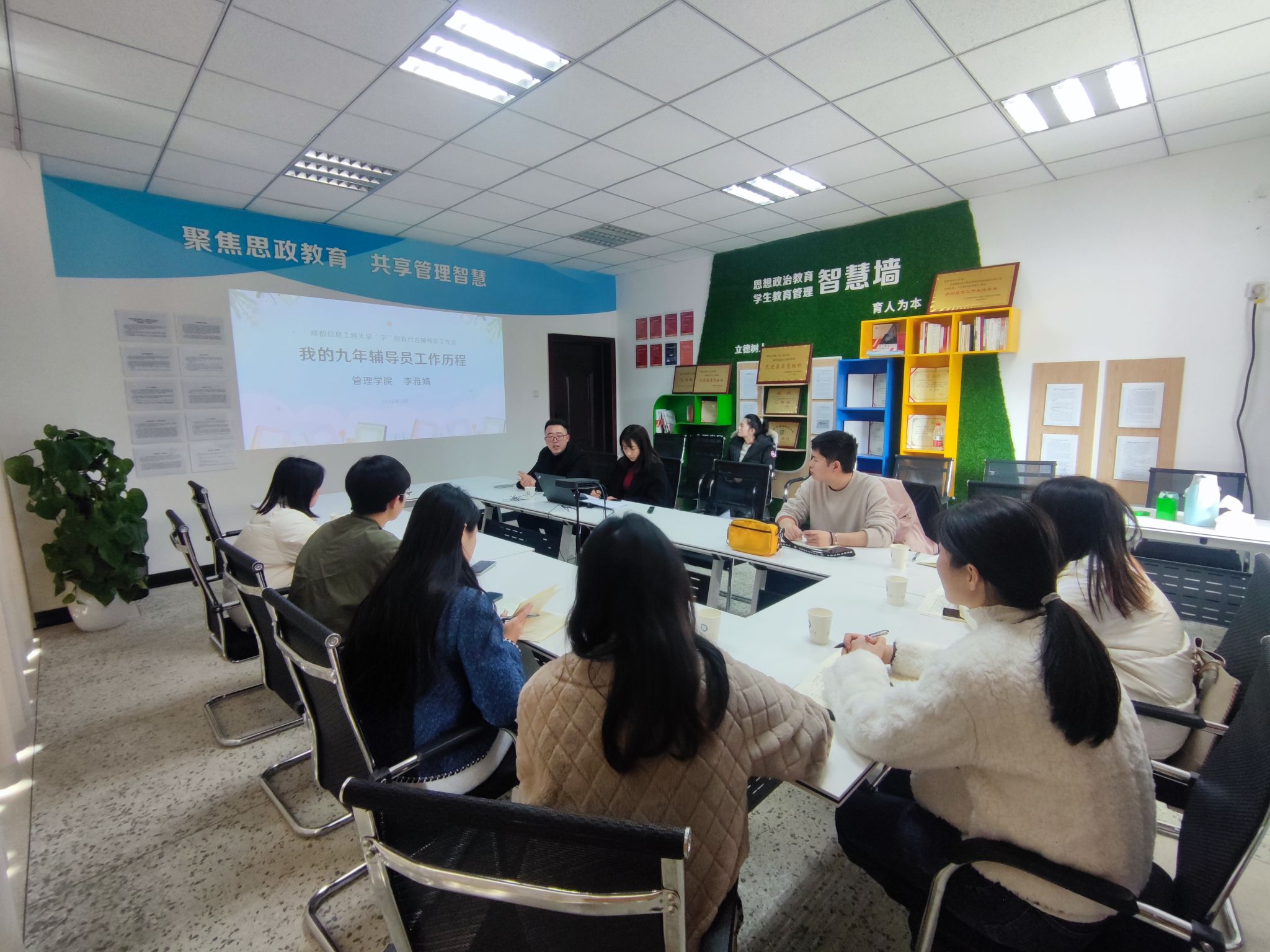 培训会上,李雅婧通过“从学生到老师的角色转变”、“从0到1的工作积累”和“从认知到实践的过程转化”三个板块,结合辅导员工作九大职责,分享了她九年来在辅导员岗位上的工作内容和相关经验。通过对各模块工作的详细解读和工作成效的展示,引导大家在日常学生工作中建立系统性的框架结构并采用创新性的管理手段,全方位为学生提供指导和帮助,“用心”、“用情”、“用力”开展学生工作,形成从量变到质变的积累,完成个人职业能力的提升和未来职业化发展规划。