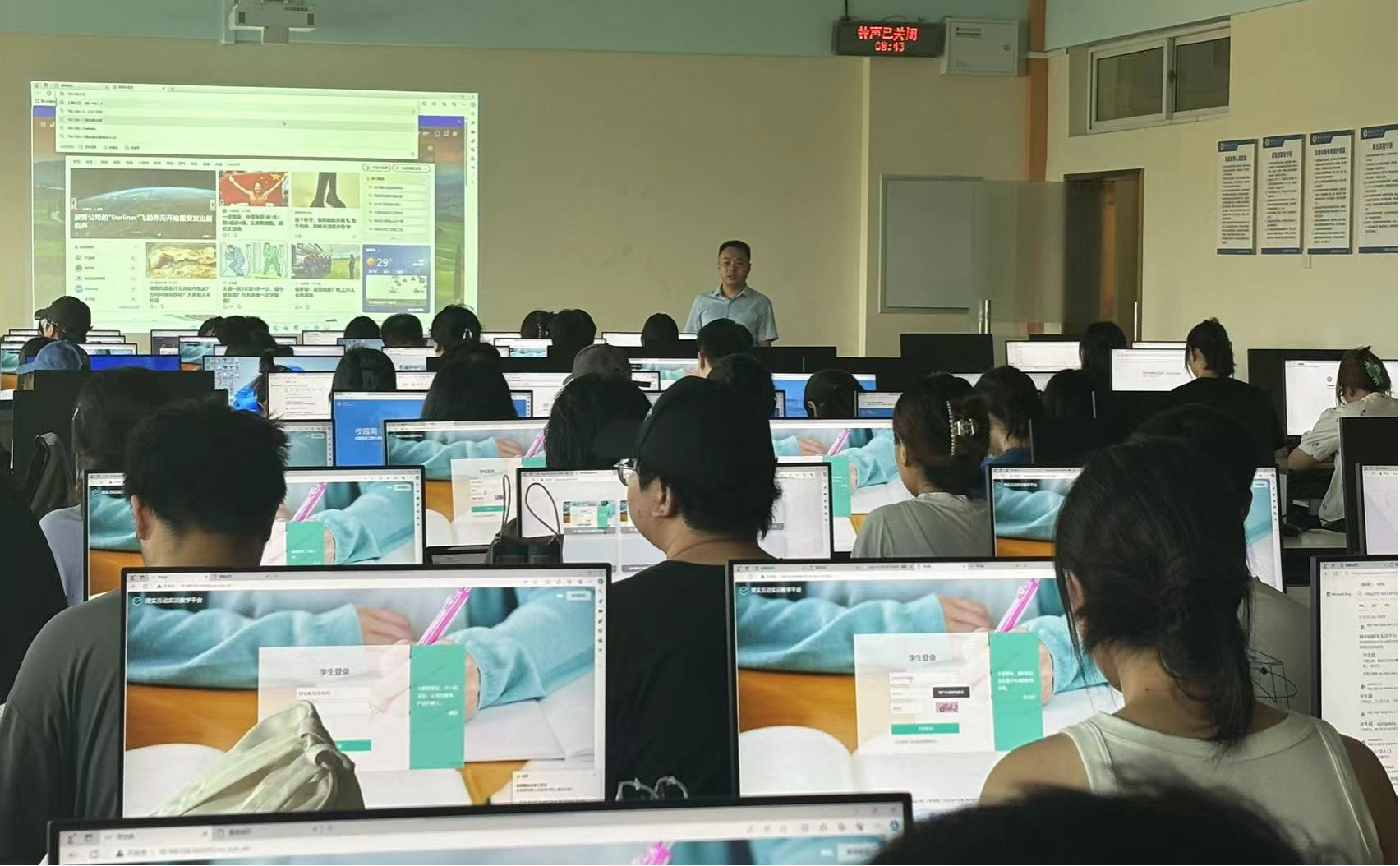何源副院长带队巡查了经管中心开学第一课,对首日的教学秩序、教学环境及教师授课状态进行了全面细致的考察。在考察教学设备与环境时,何源副院长对经管中心的教学设施给予了高度评价。他确认所有教学设备均运行正常,教室环境整洁舒适,为师生提供了良好的教学和学习条件。同时,他也对经管中心实验室老师以及任课老师在高温天气下仍能确保教学环境的舒适度表示了赞赏。