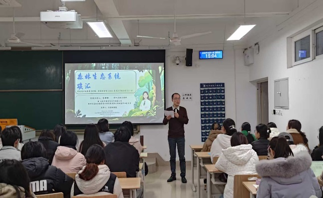 讲座中,李娜娜博士围绕森林生态系统碳汇核心主题,结合自身深耕林草领域的丰富经验,系统阐释了森林碳汇的重要性、森林碳汇计量现状及碳汇计量科技创新,通过具体科研案例,生动解读,让在场师生直观感受了林草碳汇技术在应对气候变化中的重要作用,现场思想碰撞热烈,氛围浓厚。