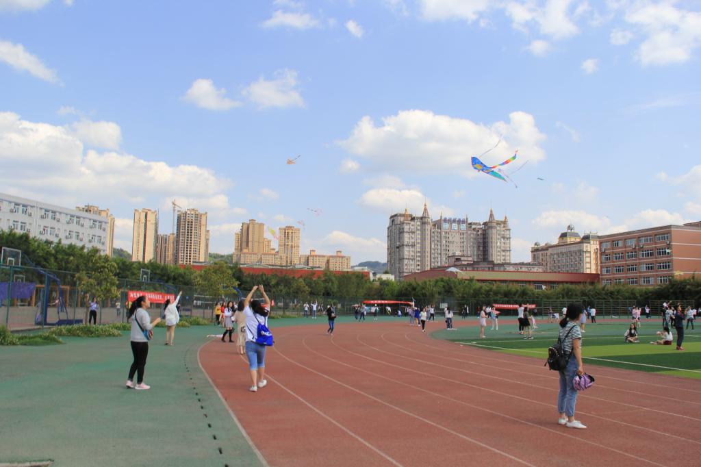 随着参赛选手和观众陆续到场,下午两点,主持人宣布成信第二届风筝节比赛正式开始。比赛现场,参赛者高举风筝,欢呼地在足球场上奔跑,一只只形态各异的风筝将天空点缀得五彩缤纷。通过前三轮的比拼,三位放风筝最高者胜出,随后三名胜出者参与第四轮的冠军争夺赛。经过精彩的比拼,最终诞生了本次风筝节比赛的冠亚军。比赛期间,还通过风筝展览,现场投票评选出11个风筝创意设计的优秀奖。当天下午,未参加风筝比赛的同学在现场进行跳房子、滚铁环、投掷沙包等活动,游戏区充满欢声笑语。