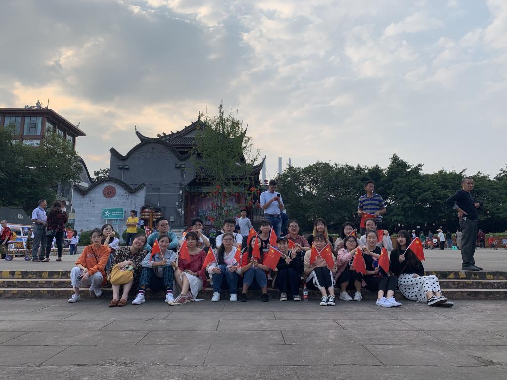 志愿者们分为两队,分别来到了上牌坊和中国艺库,与洛带社区群众一同高唱《我和我的祖国》、《歌唱祖国》等脍炙人口的歌曲,以幸福的笑脸和嘹亮的歌声表达对祖国的祝福。随后相聚于客家土楼,欣赏洛带社区带来的文艺表演,激昂的歌声,感染了现场的每一个人。