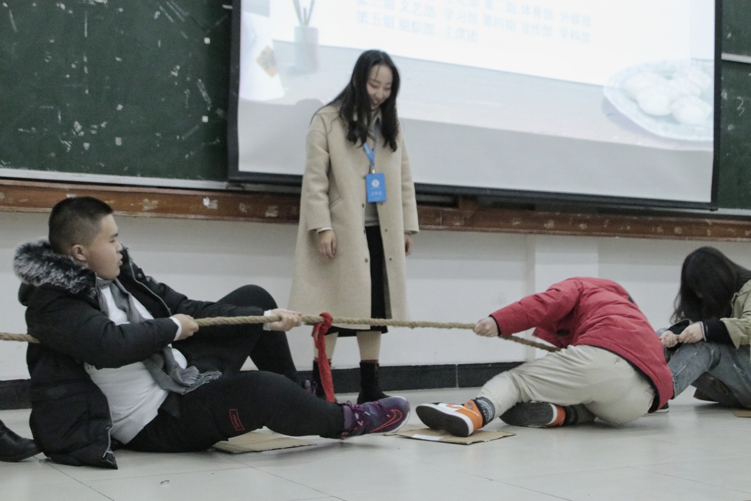 下午4时,社团部以及其他部门自发前来的成员在学生食堂一楼开始准备制作饺子,最终,近千个饺子送入一楼食堂厨房,等待下锅。晚7时,各部门成员陆续到达4102室参加活动。本次活动游戏环节采用积分制进行,看台词猜电影名、坐地拔河、包饺子比赛、歌词接龙等一系列有趣的游戏令现场气氛火热起来。