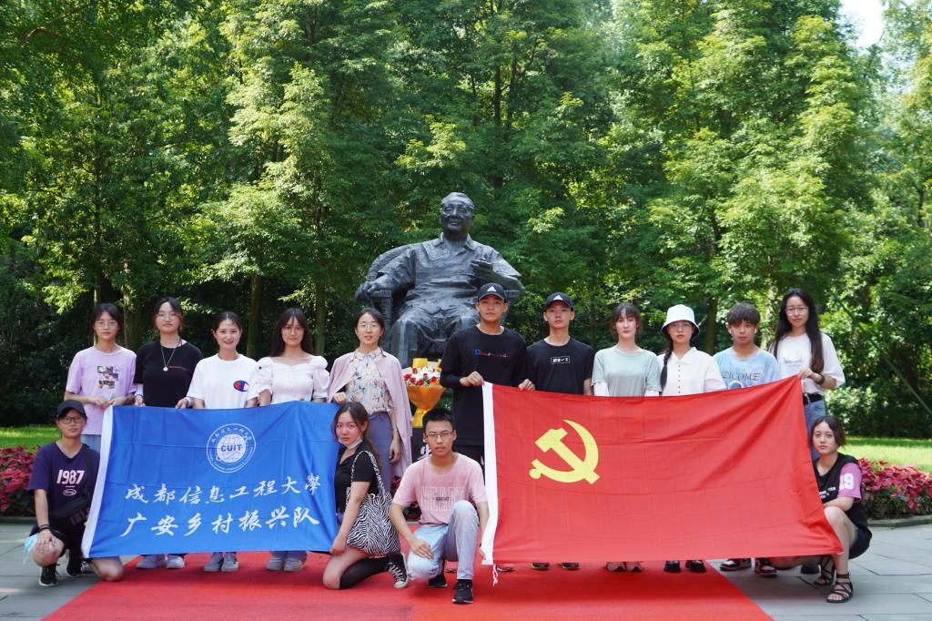 下午,广安乡村振兴队到达邓小平故里开展追寻红色脚印活动,邓小平青铜像广场,小平爷爷身穿短袖衬衫,依旧面带微笑地坐在椅子上,亲切地注视远方,眼里总是群众。实践队伍面对小平铜像肃立,一鞠躬含崇敬之意,二鞠躬表感恩之情,三鞠躬诉思念之心。
