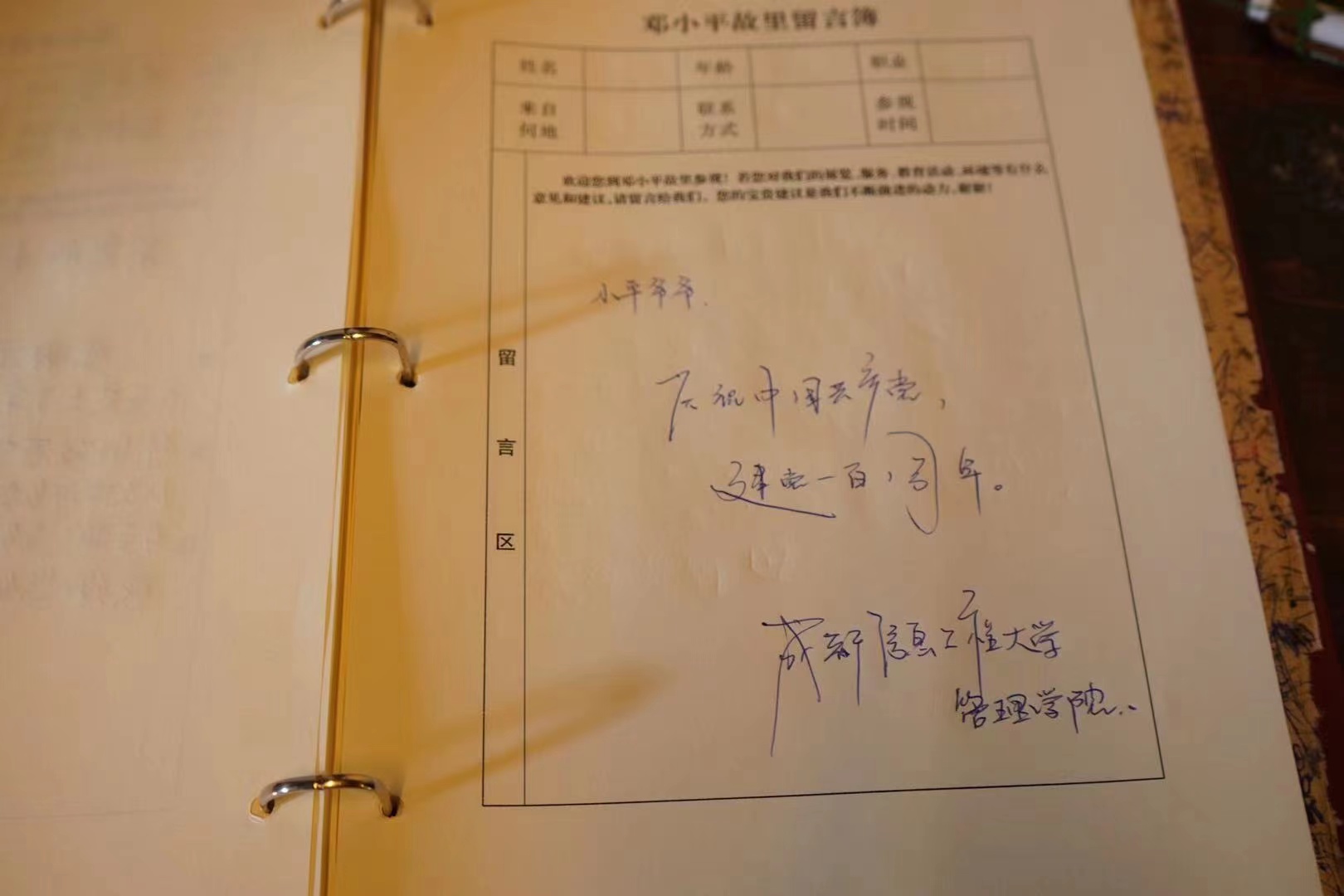 最后,队伍来到邓小平故居,陈列的桌椅,仿佛看见在那个年代,邓小平同志手持锈迹斑斑的钢笔尖,书写着革命时代的热血,泛黄信笺上的文字,闪耀着党的光辉。一床一灯,展现艰苦岁月;一桌一椅,传承奋斗精神。不朽的精神,不变的作风。
