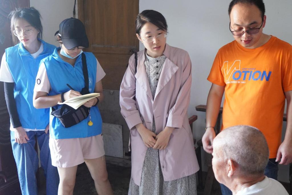 带队老师孙夕雅针对政府政策惠及情况与老人交流沟通,队员们询问老人生活中存在的困难以及享受的政府补贴救助政策,并为老人送去温暖,老人对书记和队员们的来到表示感谢。