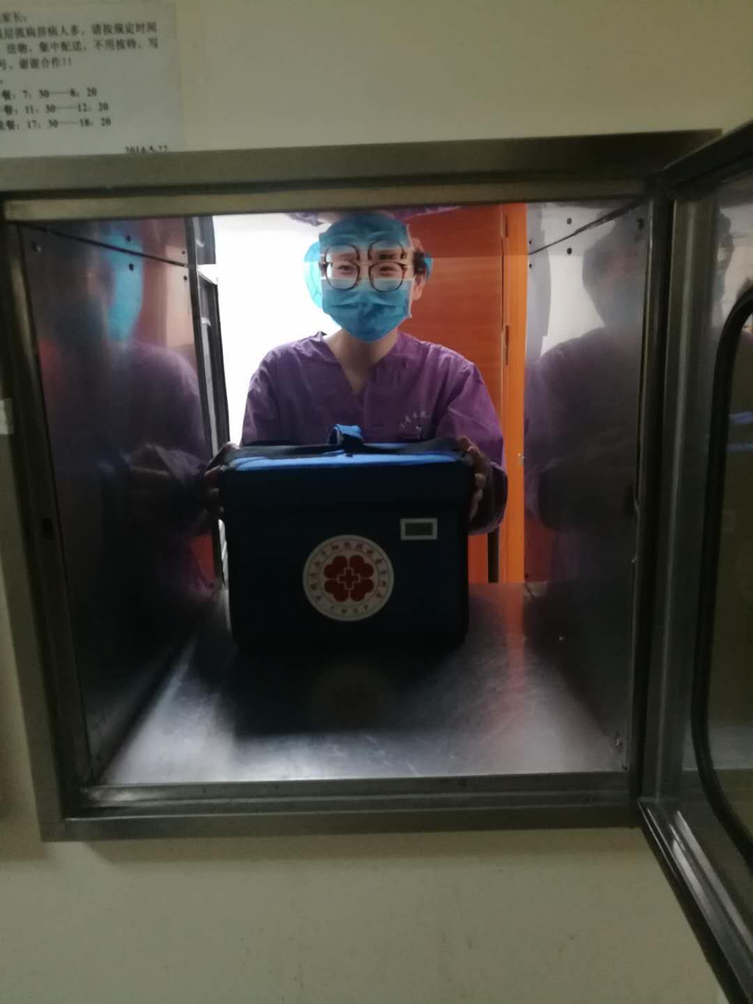志愿者于11月8日上午十点到达四川省人民医院,陪伴这名二十一岁的捐献者分离造血干细胞,分离过程大约持续了3—4小时,据析这并非是捐献者的首次分离,早在前一天,他已分离出大约两百毫升的造血干细胞,当得知患者的病情加重时,他选择了再一次进行分离,面对冰冷的分离器,捐献者用浅浅地微笑与“没事,没事”回应着青协志愿者的真挚关心,两句轻松的“没事”饱含着捐献者内心的坚定与勇敢,更是给予了青协志愿者极大地鼓励与信心。血液采集完成后,志愿者便刻不容缓地赶往成都双流机场,一路上,不仅有机场工作人员的极力配合,更有一群不知名陌生人的默默守护,当同程的路人得知志愿者手中箱子里承载的意义时,便立即对捐献者的勇敢与无畏肃然起敬,并表示希望有机会也能参与其中。志愿者到达北京时,天色虽已很晚,但北京三零七医院的医生、护士以及患者家庭都在病房里殷切地期盼着。此次白血病患者是一名女孩,伴随着造血干细胞急救箱的传递,不仅使她的生命得到再一次绽放,更是点燃了一个家庭的希望。一次造血干细胞捐献,将两个毫无关系的陌生人以一种特殊的方式紧紧地联系在一起,一封感谢信,一句简单的:谢谢你,亲爱的陌生人,祝福你!这便是一个家庭对一个无私的捐献者最美好的祝愿!最后,志愿者与患者家属相拥告别,带着责任与使命而去,载着激动与喜悦而归。