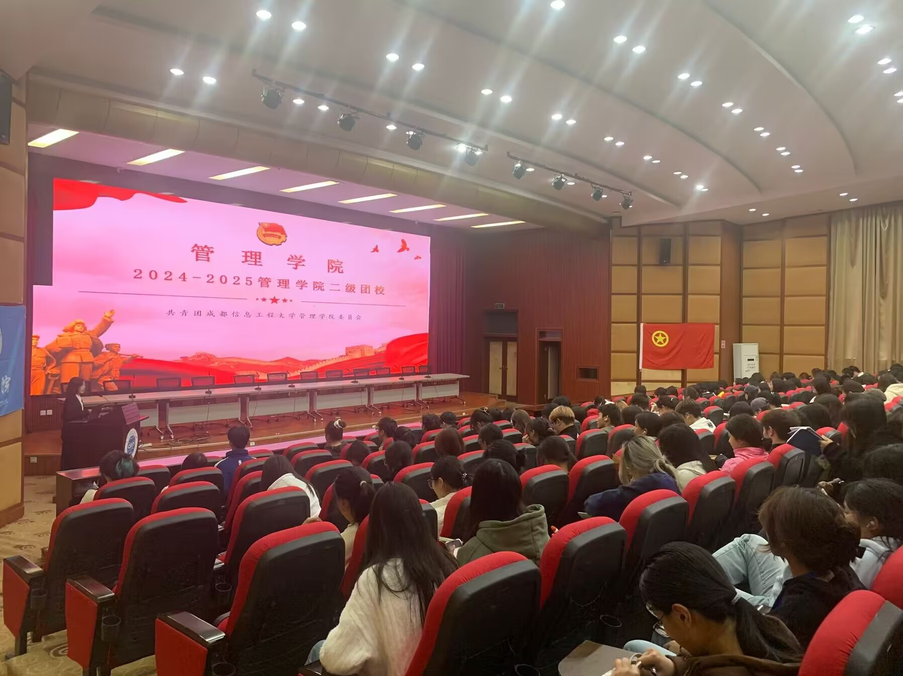 为了贯彻党的二十届三中全会精神及习近平新时代中国特色社会主义思想,让青年学生紧随党的领导,培养青年学生的爱国热情与担当,成都信息工程大学betway88西汉姆联团委自2024年11月11日起,于龙泉校区开展了为期六天的二级团校培训。本次培训由betway88西汉姆联团委书记雷媛、betway88西汉姆联专职辅导员赵亮主讲,各入团积极分子与团员干部参与了本次培训。