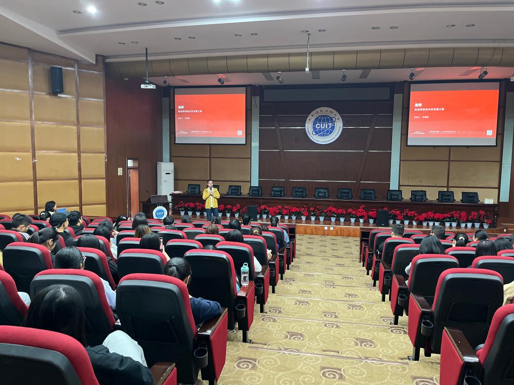 首先,特邀演讲嘉宾王嘉骏老师在学术报告厅为我们带来了《大学生成长之路》的精彩演讲。从选择的重要性,个人规划,综合能力提升的需要等角度出发,结合理论与实践,表达了对同学们的勉励和祝福。