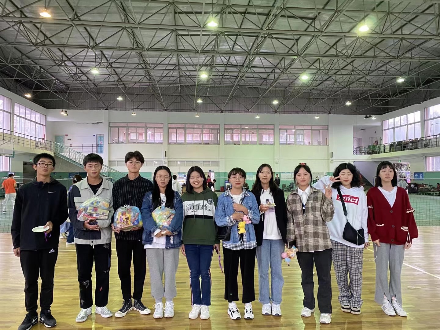 接着,同学们来到体育馆参加期待已久的游戏环节。掌上明珠,正话反说,同舟共济,快乐传真等小游戏在主持人的推动下,顺利进行。这些趣味小游戏,令大家开怀大笑的同时,也增进了彼此之间的默契度,也是一次让新同学们互相认识与了解的机会。游戏中三名的队伍,分别获得了笔记本,小零食和玩偶的奖励。