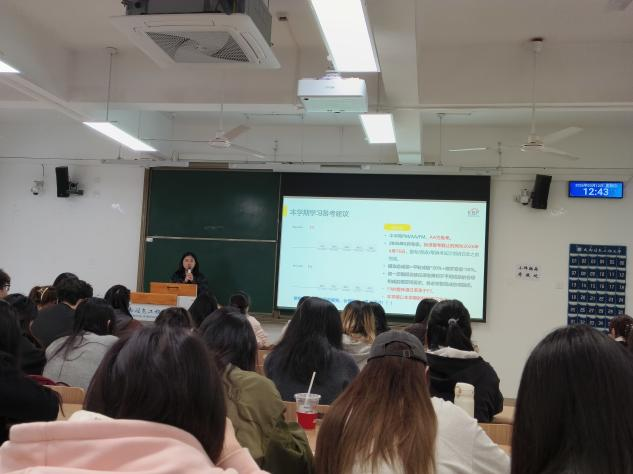 ACCA班主任徐超男结合新学期教学安排,对备考策略与未来规划作出系统讲解。备考方面,本学期重点科目为《业绩管理》(PM)与《财务管理》(FM),《审计与鉴证》(AA)为免考科目;建议学生充分利用课堂教学,结合自身学习节奏合理制定报考计划。在未来规划环节,徐老师分别从考研、留学、就业三个方面展开分析,建议考研学生尽早确定目标院校及专业,提前备考;持续提升专业知识、语言能力,加强实践经验积累,掌握求职关键环节,为就业做好准备。