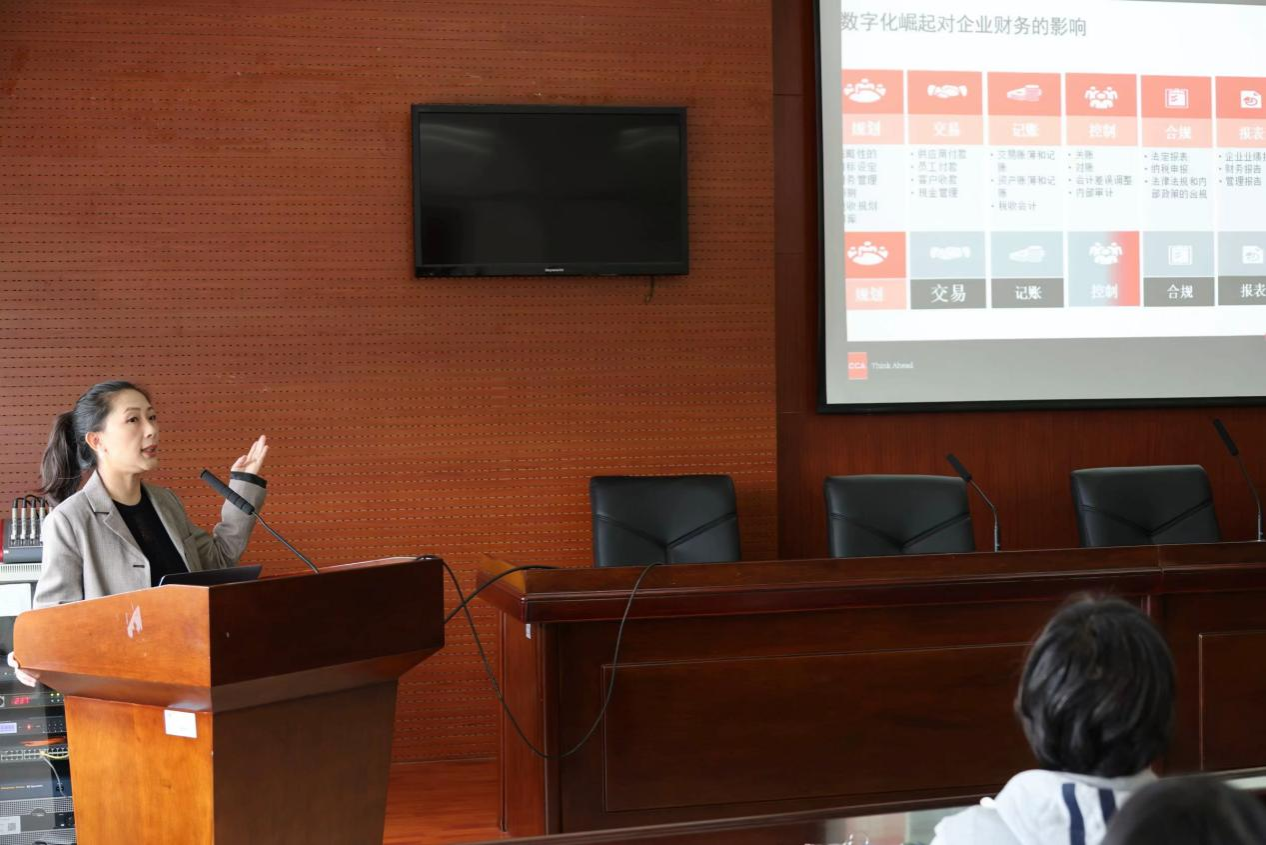 活动第一项进程,ACCA成都代表处高级商务关系经理王玮进行了名为“无界之才,无处不在”的讲座,为我们讲解了现代数字化趋势的现实及数字化崛起对企业财务的影响,并结介绍了成信大的ACCA班的优势。王玮经理的悉心讲解犹如一盏明灯,驱散了2023级新生对ACCA前景的迷茫,坚定了其对未来学习ACCA的信心。