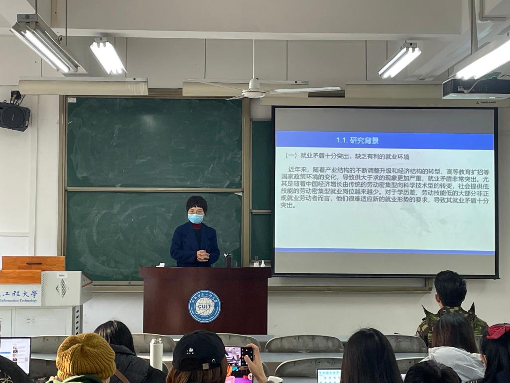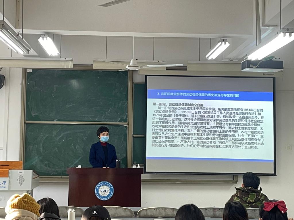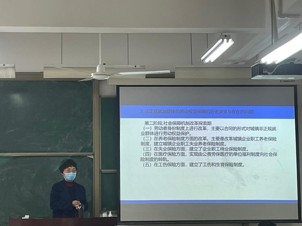 11月24日下午,在L2202教室,陈静教授就“体面劳动视角下城镇非正规就业群体的劳动权益保障研究”进行专题讲座,2021级管理科学与工程专业、农业管理专业研究生聆听了讲座。