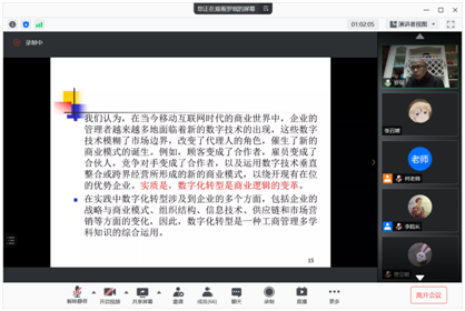 罗珉从当前我国以信息技术驱动传统企业的转型经营模式向大家做出相关的介绍,通过举例的方式帮助大家理解与拓展。他分别从数字化转型的概念和意义、数字化转型突出特点、当前我国数字技术的出现、数字化转型的过程、信息技术的战略作用等多个方面讲述了数字化转型的定位。通过国际国内在经营模式上的进展,总结了当前商业发展的大数据状况和发展模式,提出了在当前企业的发展问题中,数字化转型的两难之处,深度的分析了企业在转型与否问题的抉择上相关联的因素。罗教授指出,数字化转型以及由此产生的商业模式创新对企业的生存与发展管理具有巨大的影响,鼓励我们积极的进行相关的研究与探索。