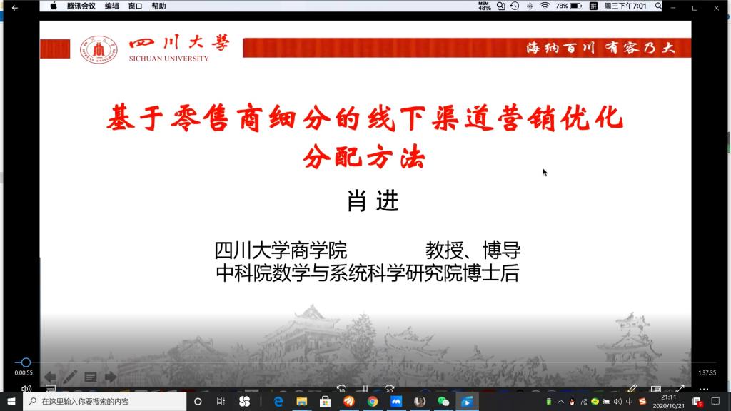 10月21日,betway88西汉姆联特邀请四川大学商学院博士生导师、中科院数学与系统科学研究院博士后肖进教授就“基于零售细分的线下渠道营销优化分配方法”为主题进行讲座。我院管理科学与工程、农业管理专业全体研究生参加了此次讲座。betway88西汉姆联院长黄萍教授出席,副院长李贵卿教授主持讲座。