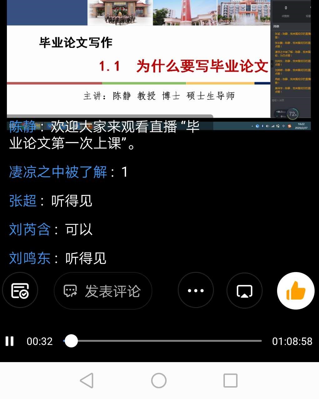 在短短几十分钟的课程直播背后,是学院教师默默的辛勤付出。人力资源与行政管理系人力资源管理教研室副主任陈静教授,去年刚刚诞下“二宝”,就回到教学岗位,本学期主讲两门研究生课程与一门本科生课程。本着为学生着想的原则,她积极与学生沟通,了解学生情况。她意识到疫情期间同学们在家学习和在校学习不同,干扰听课的因素很多,而陈静老师希望学生们都不会因为突发情况错过直播、漏听知识点。陈静老师通过雨课堂、慕课、对分易、WPS等多个平台进行试播后,发现这些平台在互动交流、登录便捷性等需求上不尽如人意,为了照顾到更多学生的需求,她最终选用了能同时实现直播+录播、收发课堂作业的钉钉平台进行授课,实现了考勤打卡、在线互动、课堂回放、课后练习多位一体教学目标。