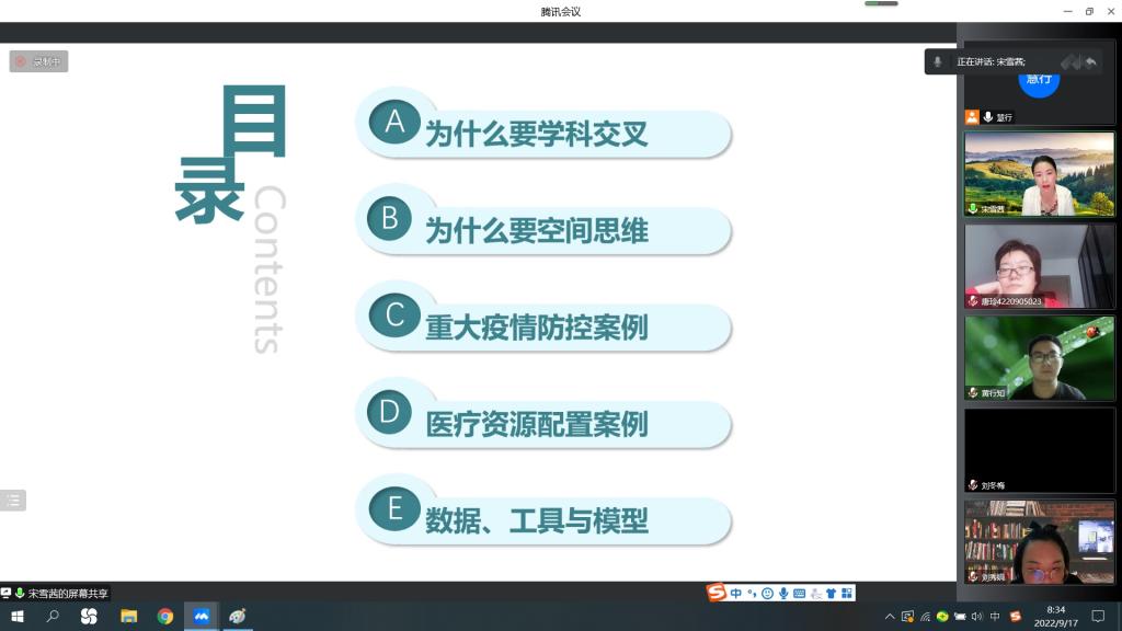 宋雪茜首先以提问的方式“管理学的研究是否应该运用学科交叉的研究思维和方法?”展开自己的讲述,同学们在线上积极互动。她还告诉同学们为什么要学科交叉和空间思维,管理与空间碰撞后产生了许多火花,例如在公共管理中的公共资源配置、旅游管理中的旅游者空间行为及农业管理中的国土空间规划等等。