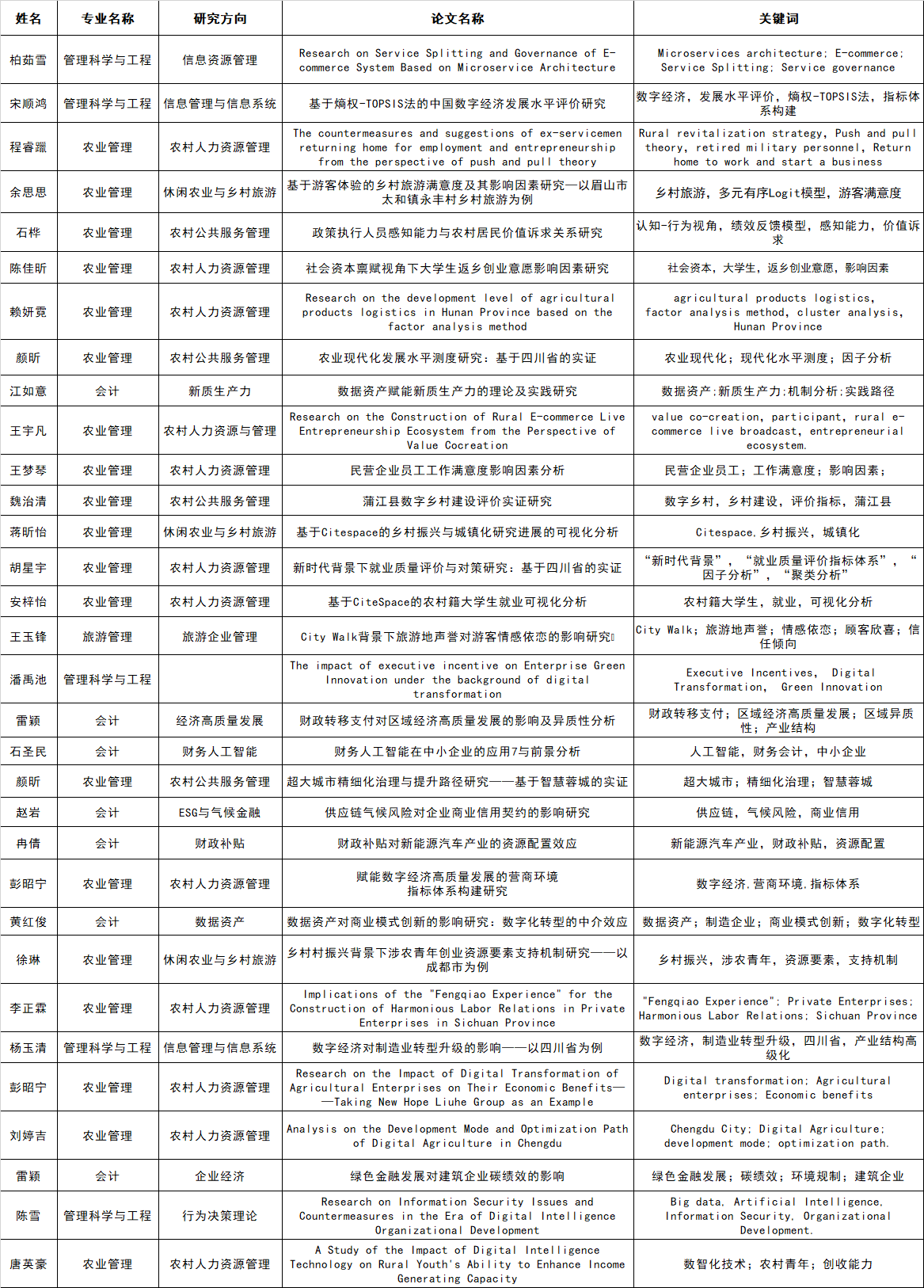 农业硕士(农业管理)22级温钰婷分享了《天府旅游名村网络传播热度及影响因素研究》,网络传播热度是客观反映旅游目的地营销效果的重要指标。天府旅游名村的创建彰显四川特色文旅精品,深入挖掘与开发乡村特色文旅资源,其网络传播热度能反映天府旅游名村的旅游发展情况和游客认同度。运用数据采集软件获取了首批天府旅游名村2021-2024在抖音与小红书上发布的视频或文章,并采用熵权法与TOPSIS分析法,从发文量、点赞量、收藏量、评论量四个方面对30个村落进行传播热度评价研究,并采用皮尔逊相关性分析研究各评价指标之间的相关性。研究发现,首批天府旅游名村网络传播热度总体不高,各村落在抖音的网络传播热度高于小红书,通江县王坪村与稻城亚丁村的传播热度分别在抖音和小红书上排名第一,发文量、点赞量、收藏量、评论量呈现显著正相关性。