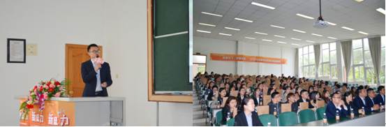 荣盛物业总经理熊松总向大家讲解了企业文化、行业前景,告诉同学们如何正确选择就业平台,如何快速成长、提升自我能力,并实现个人职业规划,诚挚邀请同学们加入“我的荣盛时代”,满满的亲和力,语言风趣幽默,同学们听的津津有味。