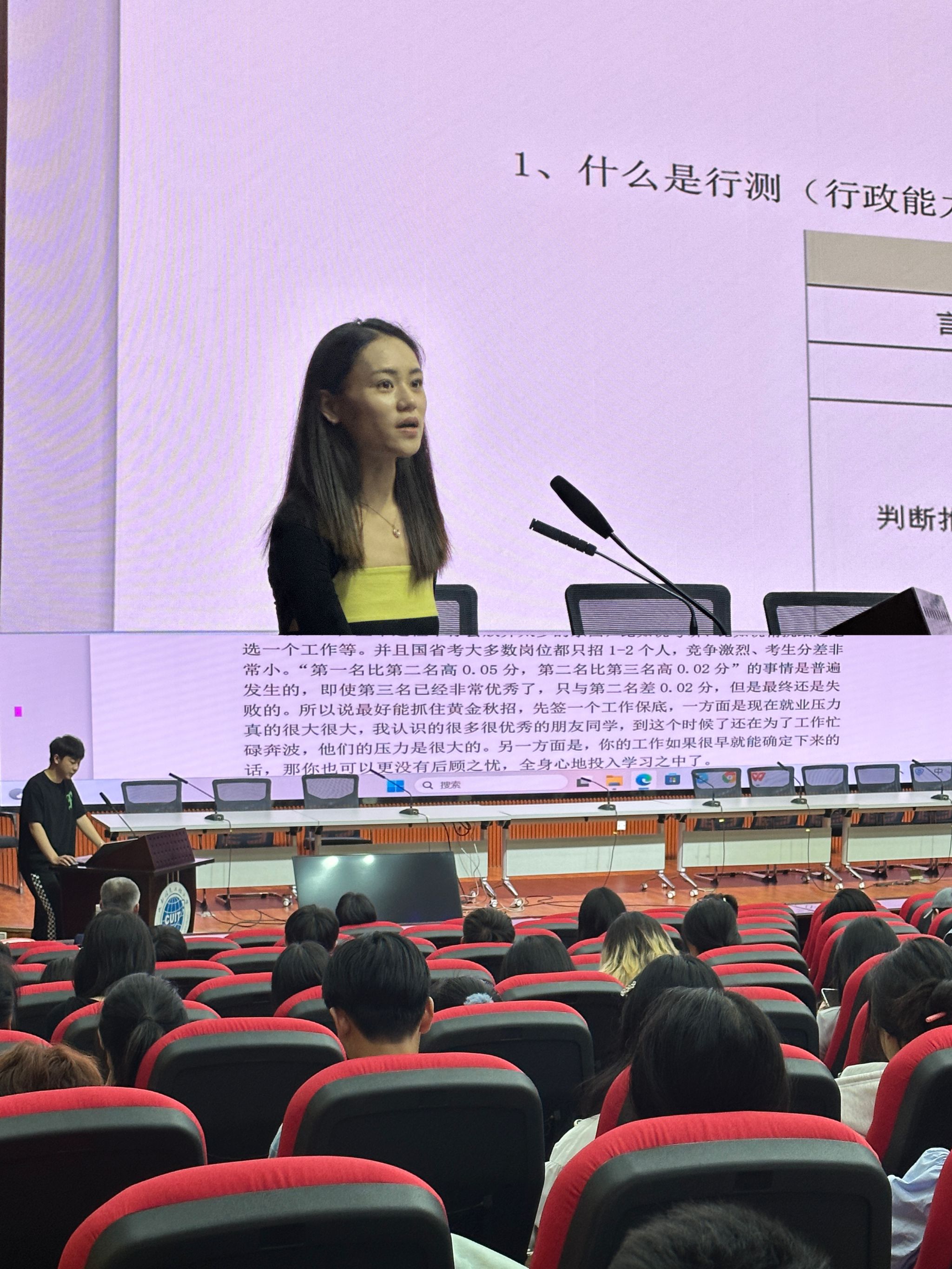 接着,两位考上公务员的2023届毕业生带来了精彩的经验分享。安子悦从笔试备考和面试备考两个方面详细分享了自己的经验,李泽轩从秋招和公务员备考两个方面做了分享。