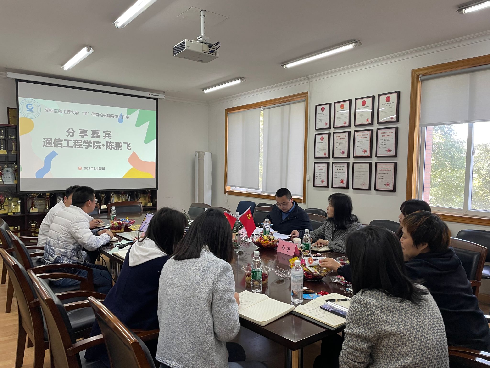 分享环节,陈鹏飞围绕学风建设进行了工作展示。一是学习情况,陈老师通过对所带专业班级学分绩点以及竞赛成果的分享,引出学风建设的工作思路;二是思想引领,举办学业规划大赛、不定期“灵魂式”发问、经常性的主题班会,都是陈老师给学生们强调学习重要性、创建学习氛围的有力途径;三是学风建设,浓厚的学习氛围需要优良的学习风气来维护,学习风气又需要强有力的管理机制来建设,如每周严格考勤,建立“无手机课堂”,以及不定时查看大一新生和一些学习后进生的晚自习情况;四是沟通交流,陈老师通过对接任课老师、班委和学习困难生的家长,跟进掌握学生学习情况的同时也增强了学风建设其他主体的参与度。
